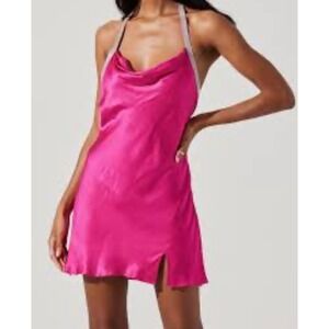 ASTR Women's Pink Sicily Halter Dress Lined Rhinestones Size Medium New $118