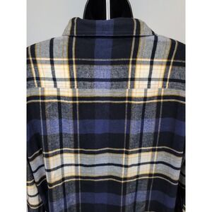 The Madewell Flannel Oversized Ex-Boyfriend Shirt in Blue Plaid is a stylish and versatile top for women in size Small. Made from 100% cotton flannel, this long sleeve button-up shirt features a collared neckline and a relaxed fit, perfect for casual, workwear, or travel occasions. The shirt also includes accents such as buttons and pockets, making it a fashionable and comfortable addition to your wardrobe for fall, winter, or spring seasons.