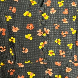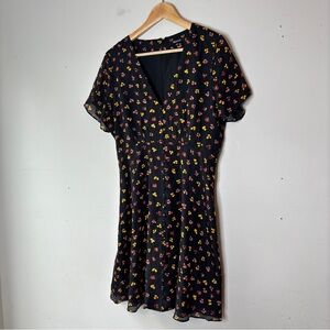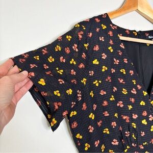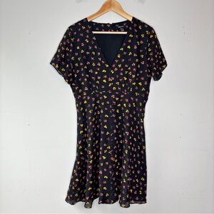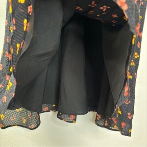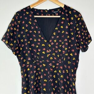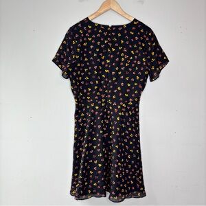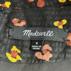Madewell Silk Button Front Swing Dress Black Feline Floral AB340 Size 8