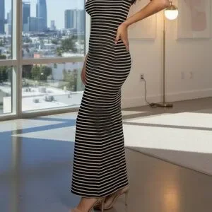 Sleek and timeless, this striped bodycon maxi dress offers a clean, figure-hugging silhouette with everyday ease. The ribbed knit fabric stretches comfortably, highlighting your natural curves while maintaining a smooth, streamlined look. Spaghetti straps and the lightweight design keep it breathable and stylish for warm weather. Perfect for brunch, date nights, or casual outings, it pairs effortlessly with sandals or sneakers.