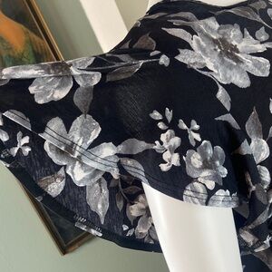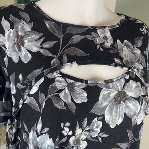 NWOT Floral Black Gray Long Tunic Blouse Shirt Top Heimish Cutout Flutter Sleeve