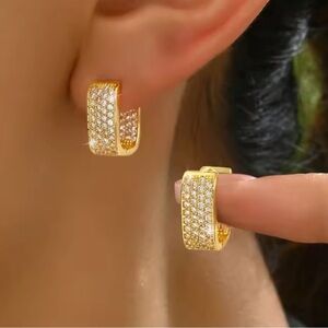ZA copper zircon 18k Gold color lux Hoop Earrings