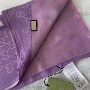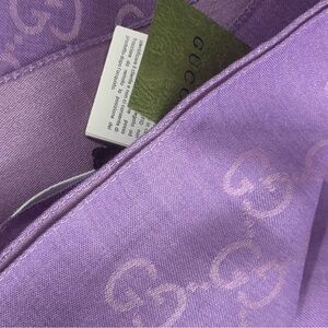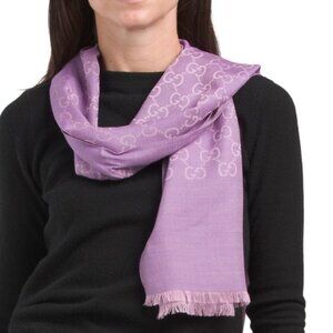 GUCCI Made In Italy Wool Silk Blend Luxury Logo Scarf Lilac 18in W x 71in L NWT