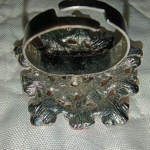 These two silver tone vintage adjustable rings are both large statement pieces--