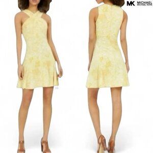 Step into style with this Michael Michael Kors crossover-neck mini dress in vibrant yellow floral paisley. The flattering fit-and-flare silhouette and chic crisscross neckline make it perfect from workdays to weekends. Lightweight, comfortable, and versatile — a seamless blend of sophistication and ease.