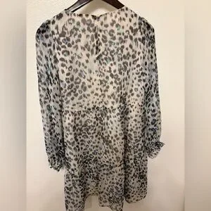 LOFT Abstract Print dress in Cream and Blue