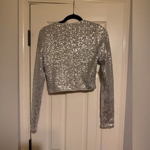 Dazzling metallic silver top with sequins. Ideal for festive occasions.