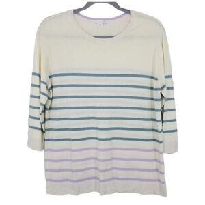 3/$25 J Jill Striped Sweater S 3/4 Sleeves Cream Purple Blue Cotton Bamboo