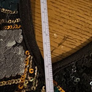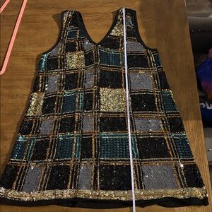 Elegant dress with shimmering black and gold sequins. Perfect for evening wear.