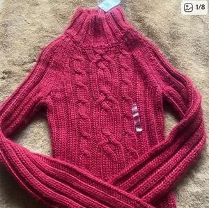 Abercrombie & Fitch Red Cable Knit Turtleneck Sweater