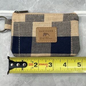 Brand new, never been used - Dabixiang coin purse or small wallet. Has zipper closure, one outside open pocket, and key ring. Colors: tan, navy blue, and brown.