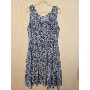 The Tahari tiered floral midi dress is a size 16 but would better fit a size Medium. Sleeveless, and fully lined lightweight dress perfect for most women. This A-line style dress features a beautiful blue floral pattern, with a tiered design that adds a layered accent to the elegant silhouette. The midi length and lightweight fabric make it a comfortable and stylish choice for various occasions, while the floral theme adds a touch of springtime charm to your wardrobe.