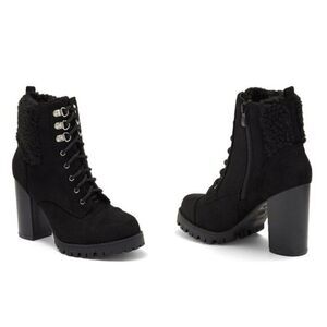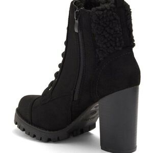TOP MODA SHOES Sassy Faux Shearling Cuff Lug Sole Bootie (Women), black