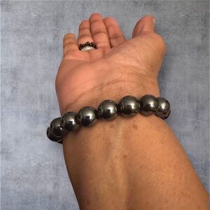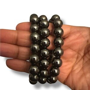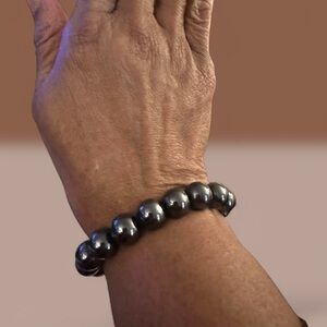Elegant silver Hematite Crystal 12mm bead bracelet. Perfect for any occasion.