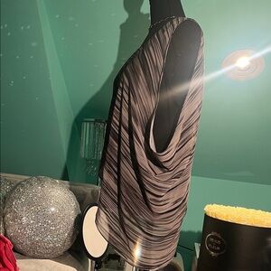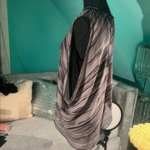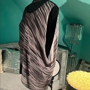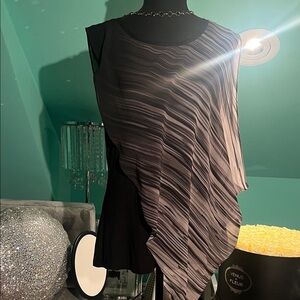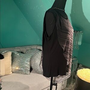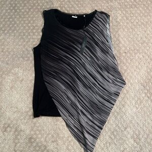 Tahari Black and Gray Asymmetrical Blouse