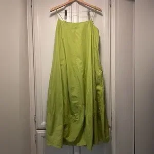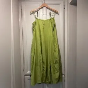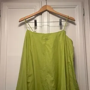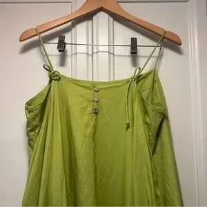 Free People Struttin Midi Cotton Chartreuse Green Dress Spaghetti Strap Sz Large