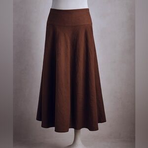 Vintage LRL 100% Linen Dark Brown A-Line Midi Skirt Lined – Fits Like 6/8