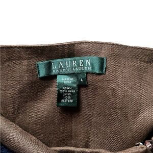 Vintage LRL Dark Brown 100% Linen Midi A-Line Lined Skirt Size 4. Although labeled Size 4, please see measurements — waist fits more like a modern size 6–8. Please compare to your best-fitting skirt. LRL Vest in listing photo for sale in my closet.