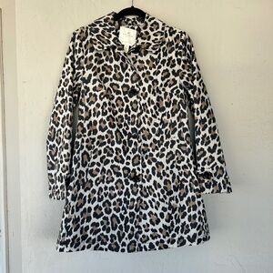 Kate Spade Cotton Blend Leopard Print A-line Coat Women's Size Small Button Up