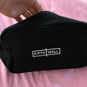 Stylish black toiletry bag with Fifth Wall logo. Perfect for on-the-go convenience.