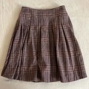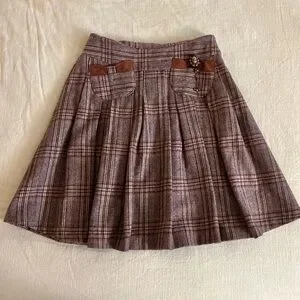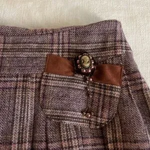Italian vintage pleated plaid wool midi skirt with Victorian brooch M