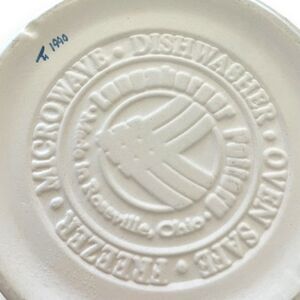 This lovely vintage pitcher is in excellent condition. There are no chips or cracks. It is ivory or off-white with a dainty blue design. The pitcher itself is quite hefty and substantial. It’s perfect for summer picnics or winter egg nog! It’s approximately 7 1/2” tall and 6 1/2” wide at the mouth.