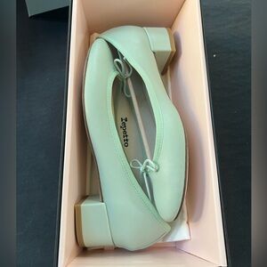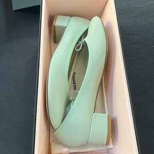New season brand new unworn repetto ballerina block heels in aqua nappa calfskin