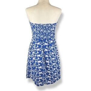 Old Navy Strapless Dress Womens Size 12 Bird Print Blue White Summer Cottagecore