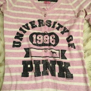 Stay stylish with this PINK Victoria's Secret long sleeve tee. Featuring a chic purple stripe design, it's perfect for casual outings.