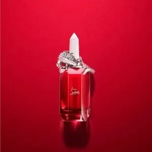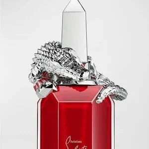 Loubicroc, part of the Christian Louboutin Loubiworld fragrance collection. The red glass bottle features an intricate, highly collectible silver crocodile cap. New. 9ml try it/travel size. Woodsy Amber fragrance notes. Unisex.