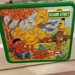 Sesame Street Green Metal Lunchbox with Bert and Ernie Design
