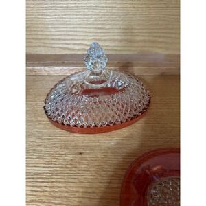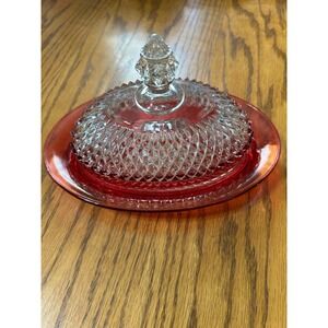 Vintage Red Glass Butter Dish with Diamond Cut Crystal Dome Lid
