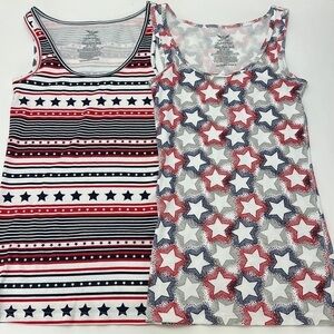 Faded Glory Must Have Tank Top Stars Stripes July 4th Medium (8-10) Bundle of 2