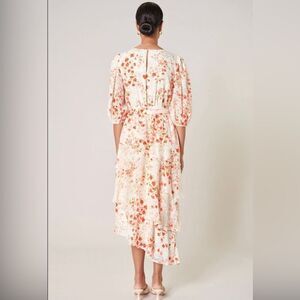 Brand new with tags. Nothing but love for you in the modest Celia Midi Dress. Sweet pink and red floral clusters lay against a cream leopard burnout making it the ultimate print pairing. The dress maintains a shift silhouette that's tied at the waist with a sash style belt, framed by balloon sleeves. Asymmetrical ruffles are layered to create a flouncy flair to the lined midi skirt. Make the perfect wedding guest in this ensemble completed by gold accessories and strappy heels.