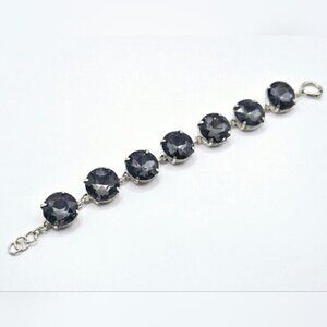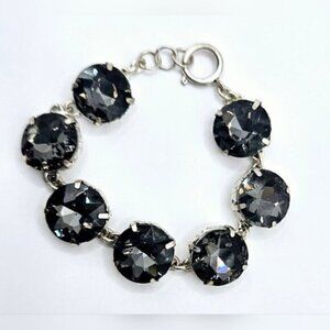 Grey Glass Crystal Button Dot Silvertone Bracelet.