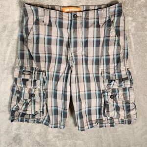 Cargo Shorts Men's 33X11 Blue Plaid Relaxed LEE Dungarees Y2K Skater