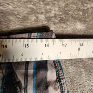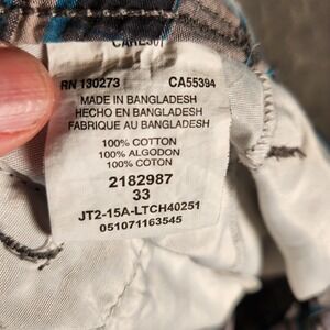 These Men's Lee Dungarees Cargo Shorts in size 33X11 are a stylish and functional addition to any wardrobe. The blue plaid design adds a casual yet rugged flair, perfect for various occasions such as travel, workwear, or outdoor activities. Made of durable canvas fabric with a relaxed fit, these shorts feature a mid-rise waist, cargo pockets, and a convenient button closure. The versatile design makes them suitable for all seasons, while the iconic Lee logo adds a touch of Americana flair. Easy to care for with machine washable instructions, these shorts are a practical and stylish choice for any man's closet.