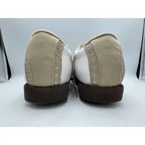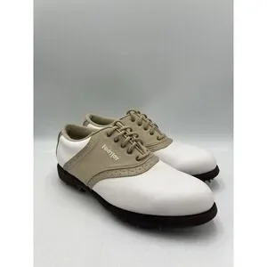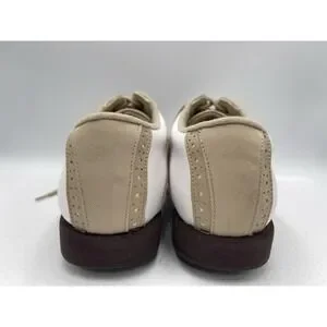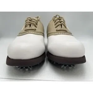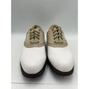 FOOTJOY GreenJoys Womens White Leather Khaki Trim Golf Shoes Size 7.5 M