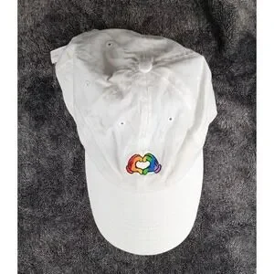 Disney Parks Rainbow Heart Hands Baseball Cap White Adjustable Strap Cotton