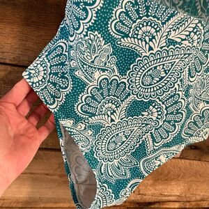 Great condition Kona Sol teal and white one piece suit with adjustable straps and sheer panels.
