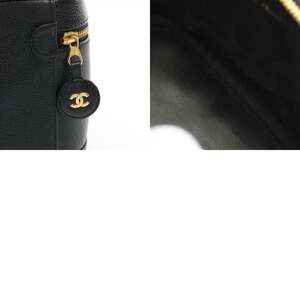 CHANEL Black Caviar Leather Logo Vanity Bag