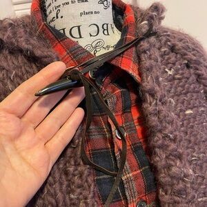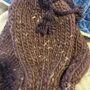 Cozy handmade wool chunky knit capelet with a hood. Perfect for layering. Features a rich purple hue. Brand new, new worn or used.
