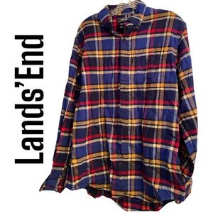 Lands’ End Multicolor button up long sleeve flannel Shirt M