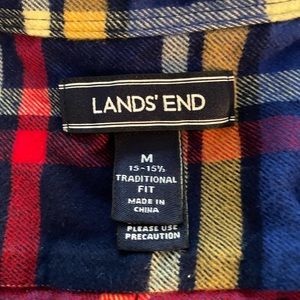 Lands’ End long sleeve button up multicolored cotton flannel shirt . Excellent preowned condition. No rips, stains or tears. Medium 15-15 1/2