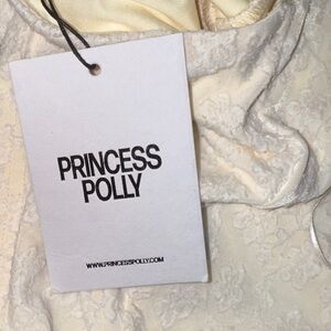 In perfect new with tag condition Princess Polly Toomba One Shoulder Ivory Lace Top, women’s size 2. Kept in a smoke free environment without added scents.