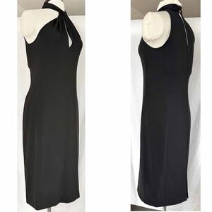 Max Mara Vintage Black Grecian HaNeck Keyhole Crepe Cocktail Dress Women Size 6