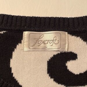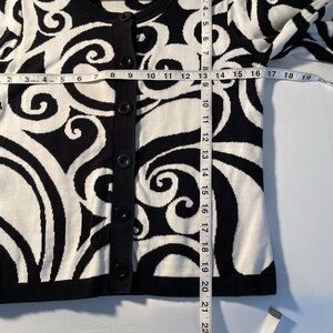 FoxCroft Black/White 3/4 Blouson Sleeve Cardigan Sweater w/Abstract Pattern XS