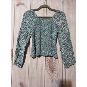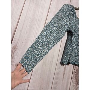 Art Class Girls Teal Floral Smocked Square Neck Long Sleeve Top XXL 18 20
