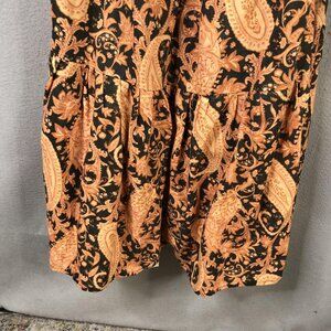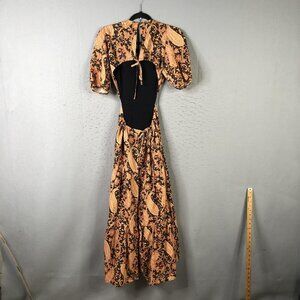 Charlie Holiday Dress Womens XS Black Orange Paisley Maxi Open Back Linen Boho