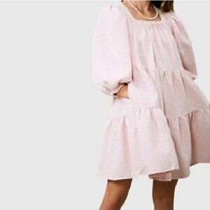 SISTER JANE XS Rosey Knees Pink White Tweed Confeetti Dress Milkmaid
